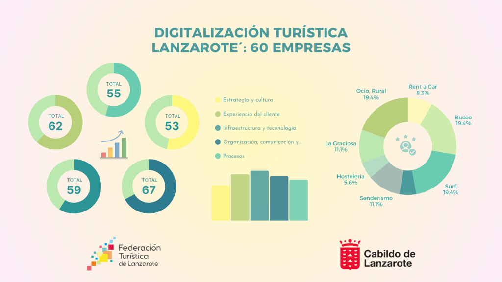 La Federación Turística de Lanzarote (FTL), a través de su Departamento de Digitalización Turística, continúa impulsando la competitividad del tejido empresarial, con un programa que este año acompaña a 60 empresas y alcanza una madurez media del 49%, lo que supone un aumento de 9 puntos respecto a 2024.