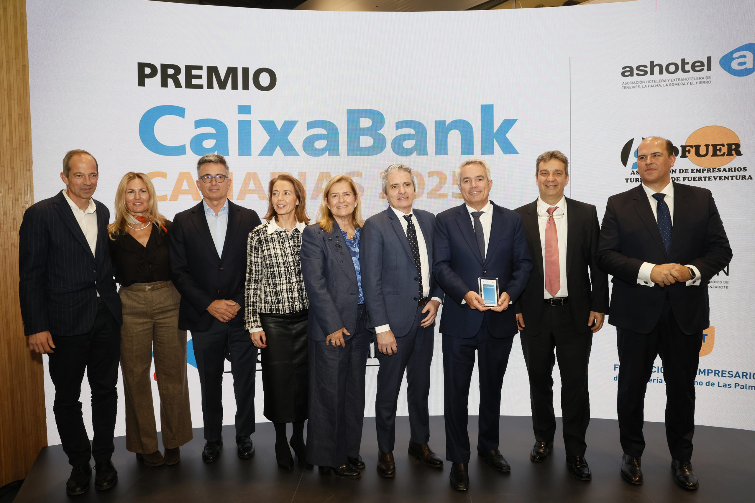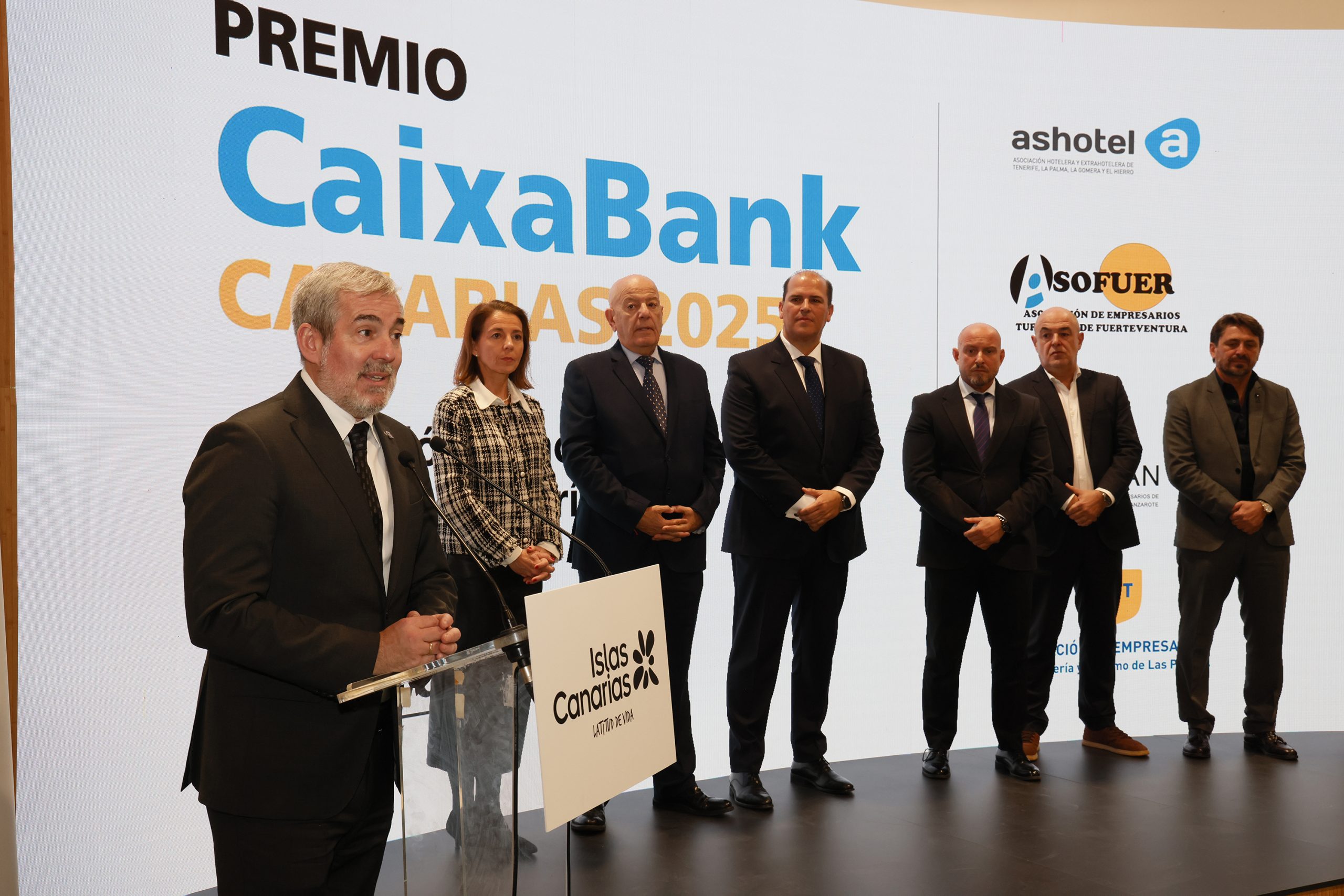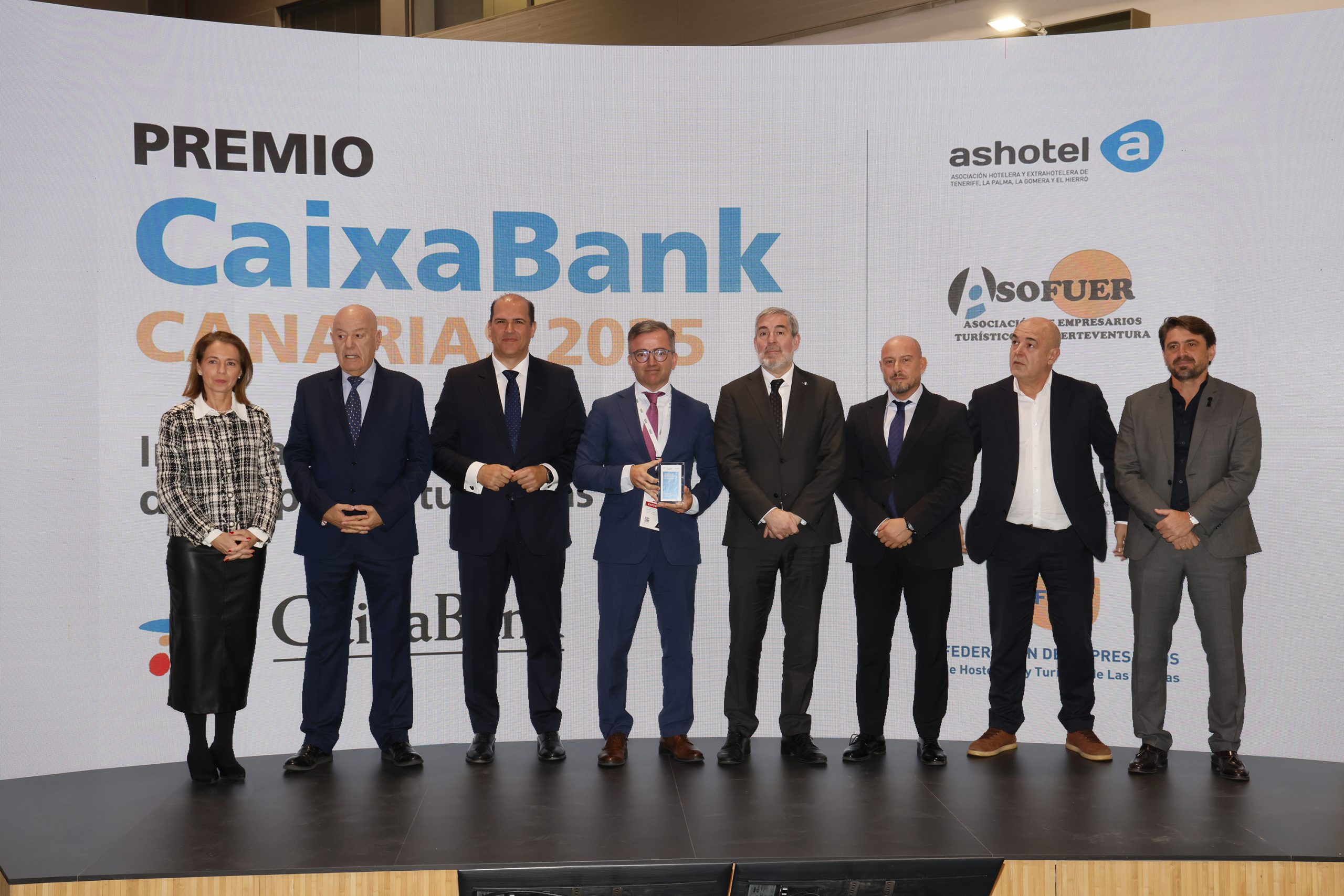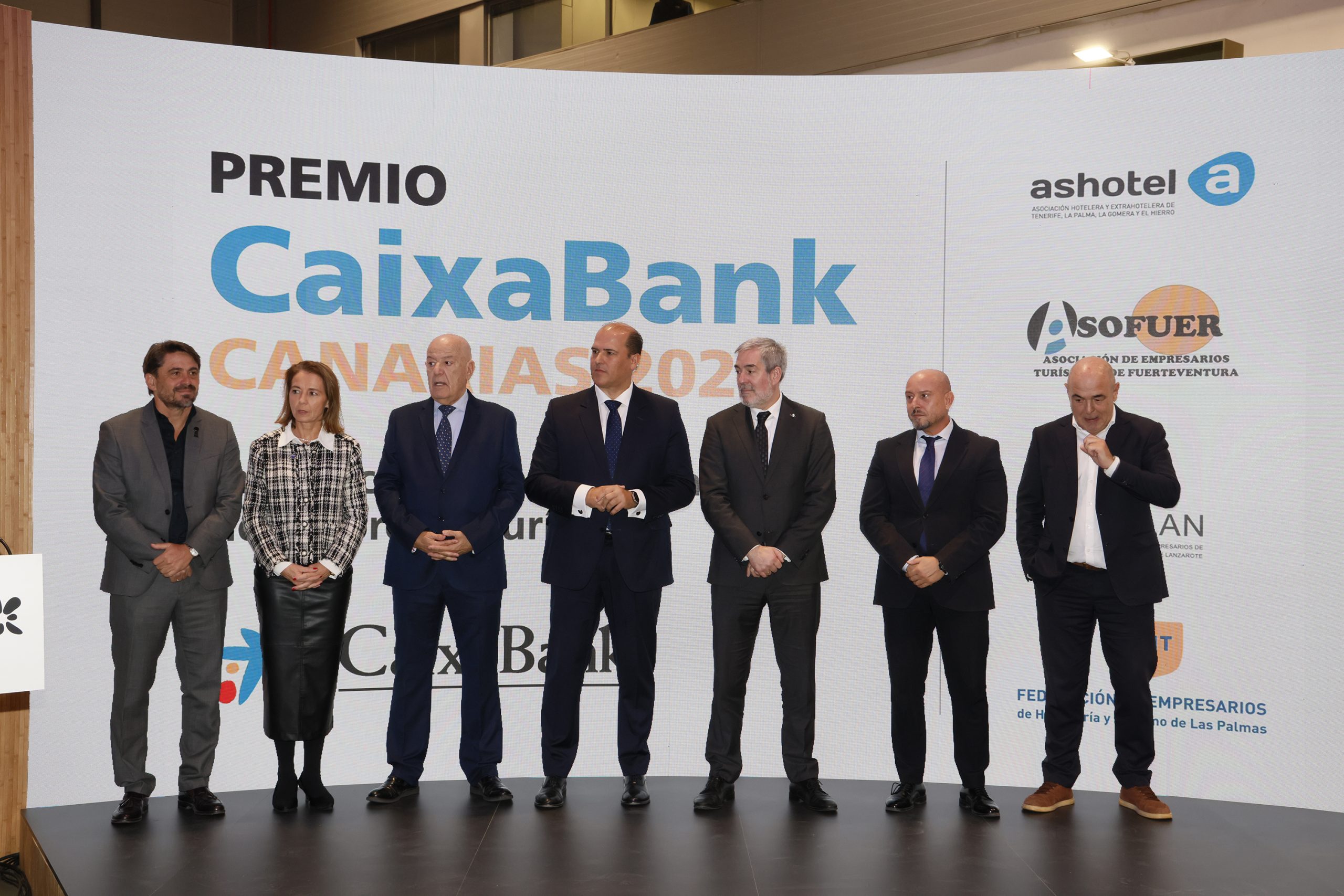 La entrega de estos galardones ha contado con la participación del presidente de Canarias, Fernando Clavijo; el director territorial de CaixaBank en Canarias, Manuel Afonso; el director comercial de Banca de Empresas de la entidad financiera en las Islas, Andrés Guerra; y los presidentes de las cuatro patronales turísticas canarias: Jorge Marichal (Ashotel), José María Mañaricua (Feht), Susana Pérez (Asolan y FTL) y Antonio Hormiga (Asofuer).